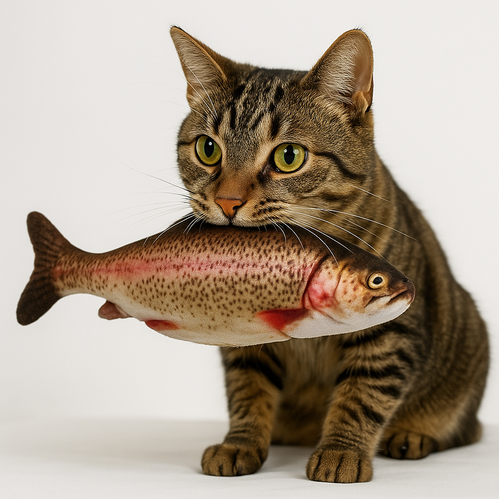 Interaktiv fiskleksak som rör sig och fladdrar automatiskt när katten leker – triggar kattens jaktinstinkt.